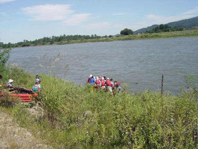川原にボートを運搬していくと、スタッフの方が上手に乗せてくれます。